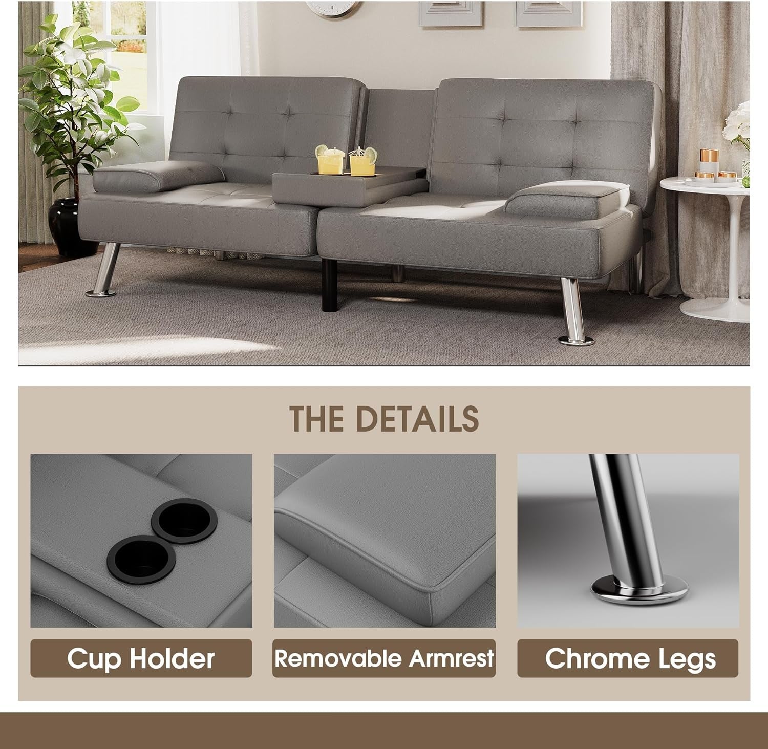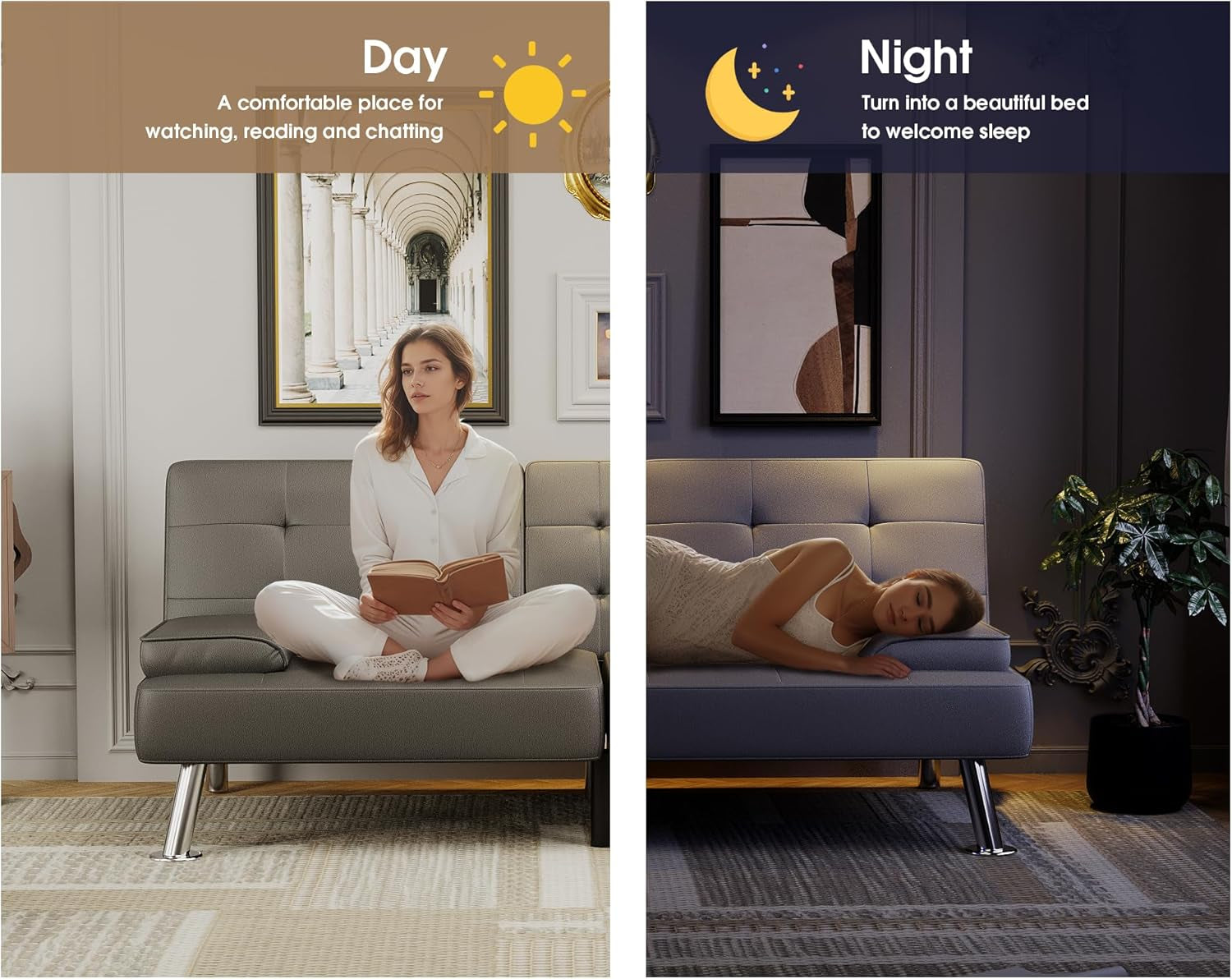 Modern Convertible Futon Sofa Bed with Cup Holders